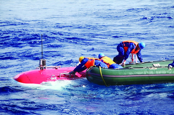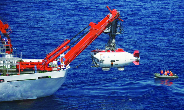 “向阳红09”船搭载蛟龙号载人潜水器正在执行海试任务