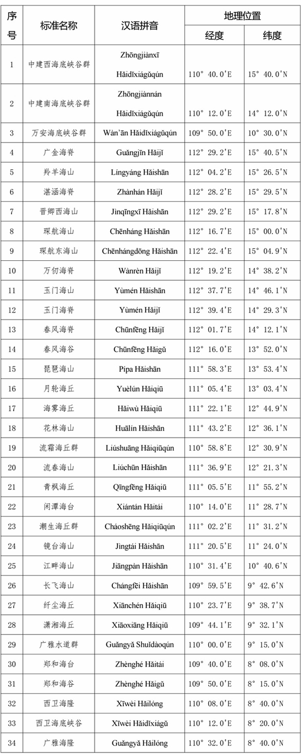 为进一步规范有关地名的使用,现将我国南海部分岛礁和海底地理实体的标准名称予以公布。中国地名委员会1983年4月受权公布的《我国南海诸岛部分标准地名》继续有效,请社会各界规范使用已公布的标准名称。