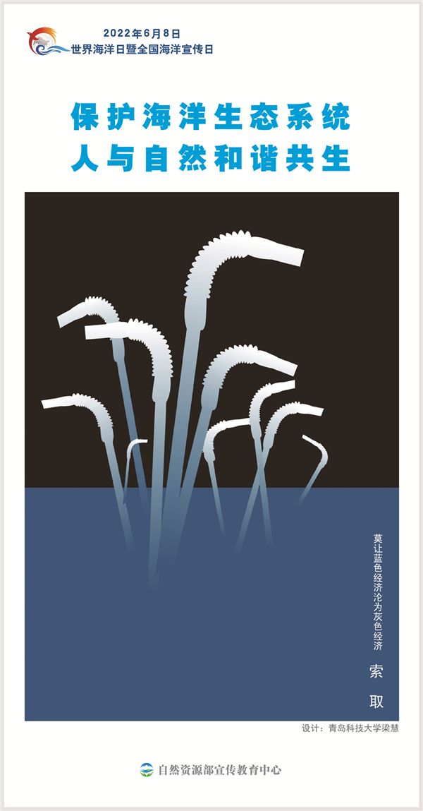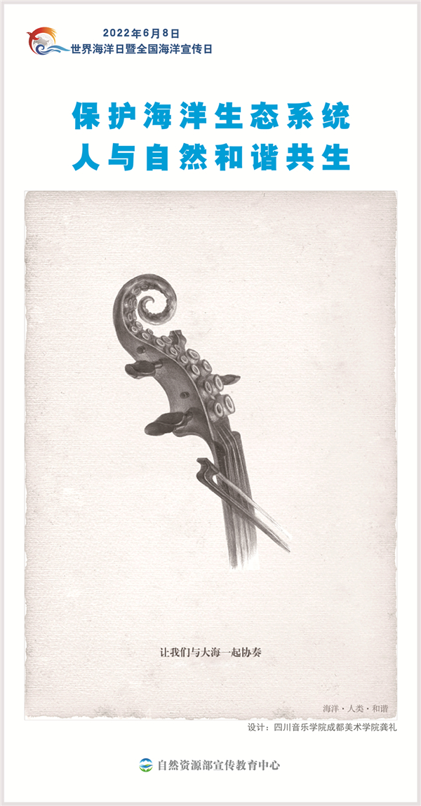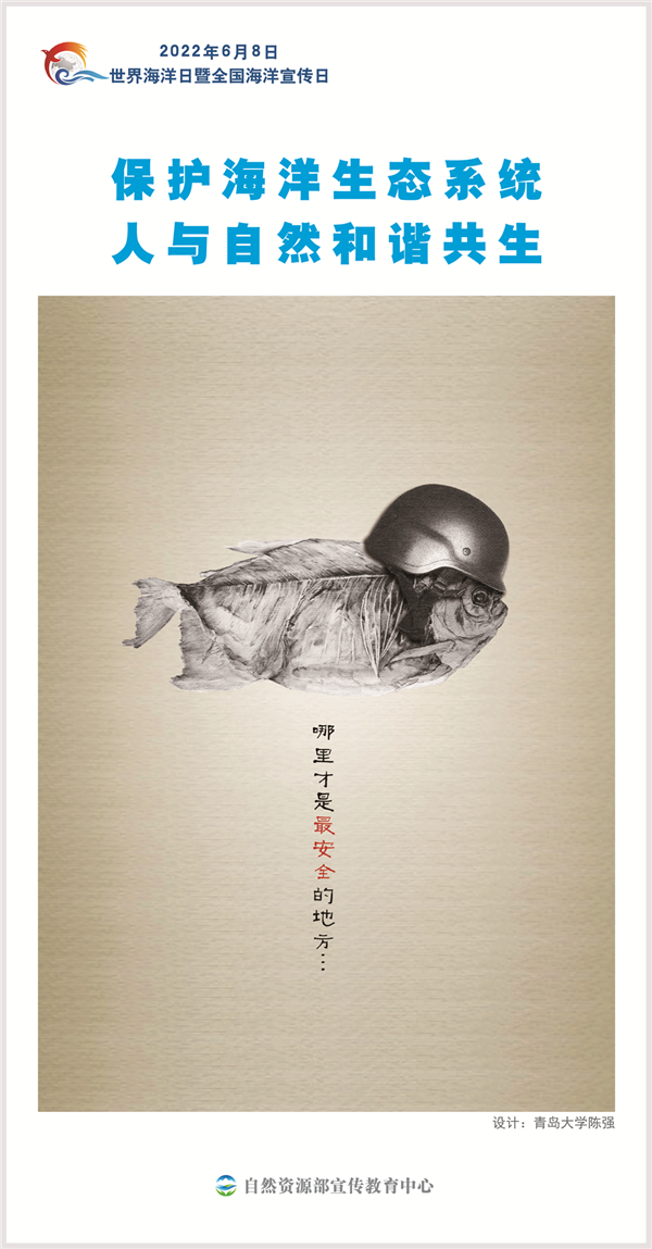 今年6月8日是第十四个“世界海洋日”暨第十五个“全国海洋宣传日”,主题是“保护海洋生态系统 人与自然和谐共生”。世界海洋日暨全国海洋宣传日来临之际,我们从自然资源部宣传教育中心和中国海洋大学等单位共同主办的全国大中学生海洋文化创意设计大赛历年获奖作品中,精选6幅作品制作了一套专题海报,供各地下载传播。
