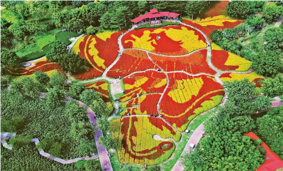 厦门致力于打造一座高颜值的生态花园之城,以高水平保护推动高质量发展、创造高品质生活。图为厦门园博苑凤尾花海景观。 (厦门市委宣传部供图)