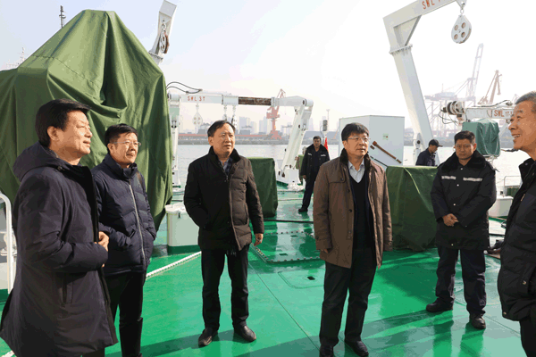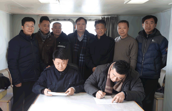 2019年2月1日,郭明克局长、陈武军副局长、孙利佳副局长一行在分局办公室、北海研究院有关负责同志的陪同下,赴分局五号码头检查船舶工作,慰问节日期间值班船员,出席海监1118船交接活动。分局领导先后登上海监101、海监102、向阳红09船检查,并与在港船舶主要船员座谈。郭明克局长向全体在节日期间坚守岗位的船员表达亲切的慰问,致以美好的祝愿,勉励大家认真履行岗位职责,严格遵守规章制度,继续抓好船舶安全工作。北海研究院代表分局与中国海警局北海分局筹备组在海监1118(向阳红58)船交接书上签字。