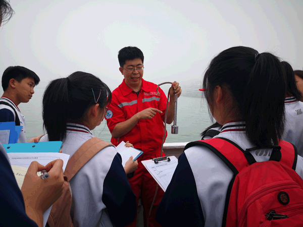 启动仪式上,主办方北海局和青岛39中相关领导发表讲话。此次海洋日启动仪式,首次采用海洋科学考察实战方式开展,青岛39中高一高二年级全体海洋班近400名师生登上“向阳红58”船,对青岛近海水域进行了风力风向观测、海水透明度和水色探究、水质调查以及海洋浮游生物种类研究等多项任务进行科学考察。活动中北海监测中心、北海预报中心安排相关领域海洋专家现场指导学生们开展科考任务。北海局和青岛39中于2011年共同开展此项海洋特色科考教育活动,至今共1000余名学生参与了科考活动,同学们通过海洋科学考察活动,收获了课本以外的海洋知识,在动手实验中提高了对海洋的认知,激发了热爱海洋、探索海洋的热情和责任感。