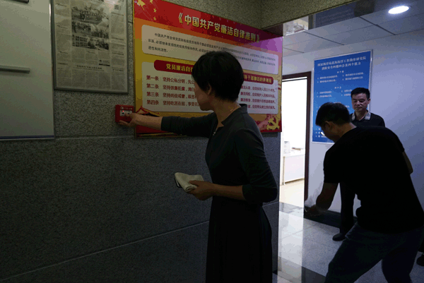 工作人员发现火情,第一时间按下楼道火灾报警按钮
