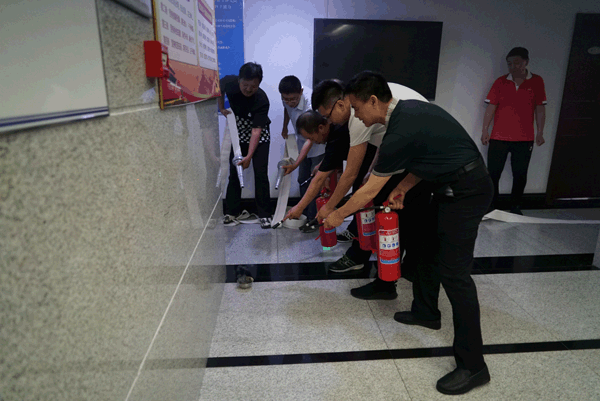 工作人员组织楼层志愿消防员第一时间开始灭火