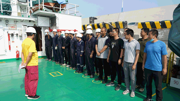 演习人员登船后,船长开展安全教育并强调演习注意事项