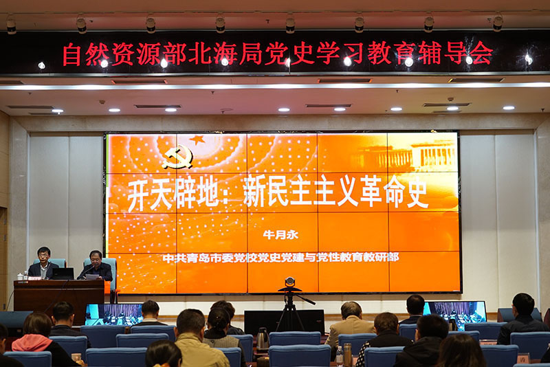 根据《自然资源部北海局党史学习教育实施方案》有关安排,4月15日,北海局举办第一期党史学习教育辅导会,邀请中共青岛市委党校党史党建与党性教育教研部牛月永同志授课。会议由北海局分党组成员、纪检组长、局党史学习教育领导小组副组长国建业同志主持,局全体党员参加会议,局机关、北海勘察院和机关服务中心在主会场参会,其他单位通过视频方式参会。 牛月永同志分别以“开天辟地:新民主主义革命史”和“改天换地:社会主义道路的探索史”两个主题,讲述了党史的前两个阶段。在新民主主义革命史中,从中国共产党的诞生、国共合作和大革命、土地革命时期、抗日战争时期、解放战争时期五个方面,以详实的史料,深入解读了中国共产党从无到有的建立过程以及带领中国人民取得新民主主义革命基本胜利的历史。在社会主义道路的探索史中,从向社会主义过渡、社会主义建设曲折发展、“文化大革命”三个部分进行了讲述。牛月永同志从重点历史启示和经验教训的角度,讲述这段党史。讲座深入浅出,语言朴实生动,使与会党员接受了一次深刻的心灵洗礼。 会后,广大党员干部纷纷表示,听完两场辅导会,收获很大,对党的历史了解更多了,对党的初心使命理解更深了,更加体会到我们今天美好生活的来之不易,更加认识到自身职责使命的重要性,今后,要继续发挥党员的先锋模范作用,传承党的光荣传统和优良作风,对标对表革命先辈,以奋发进取的精神状态,不断提高自身业务能力水平,学党史、悟思想、办实事、开新局,扎实推进各项年度工作任务落地落实,以优异成绩庆祝中国共产党成立100周年。(图 姜翰林 文 马海静)