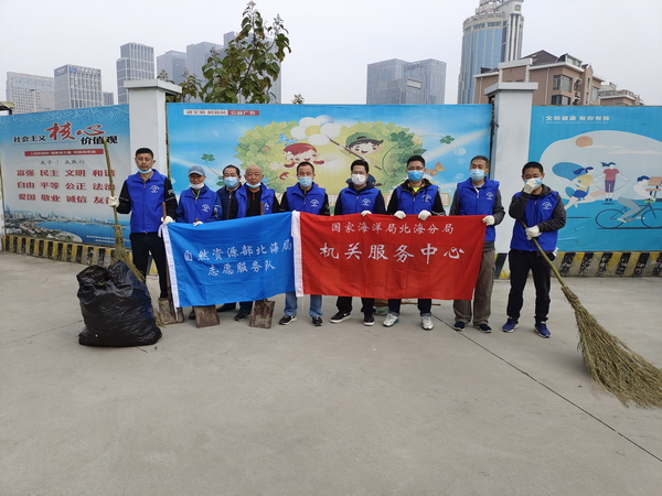 党史学习教育开展以来,北海局开展了一系列“我为群众办实事”活动。根据青岛市争创文明典范城市相关要求,积极参与青岛市文明城市联创共建活动,截至目前,已完成第一轮共八次到共建小区——碧海山庄小区开展志愿服务活动,受到社区工作人员和小区居民的一致好评。 今年是青岛市争创全国文明典范城市的起始之年、关键之年。为发挥文明单位在文明城市创建活动的示范带头作用,青岛市文明办在全市范围内组织文明单位开展文明城市联创共建活动。根据青岛市有关通知要求,北海局文明委积极组织参与文明城市联创共建活动,下发了北海局《关于参加文明城市联创共建活动的通知》,组织安排局属八家驻青单位每周轮流开展志愿服务活动。订购了“自然资源部北海局志愿服务队”队旗和志愿者服装,在志愿活动中亮牌子、亮任务、亮形象,当好“志愿服务员、监督员、宣传员”。