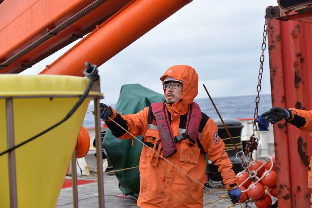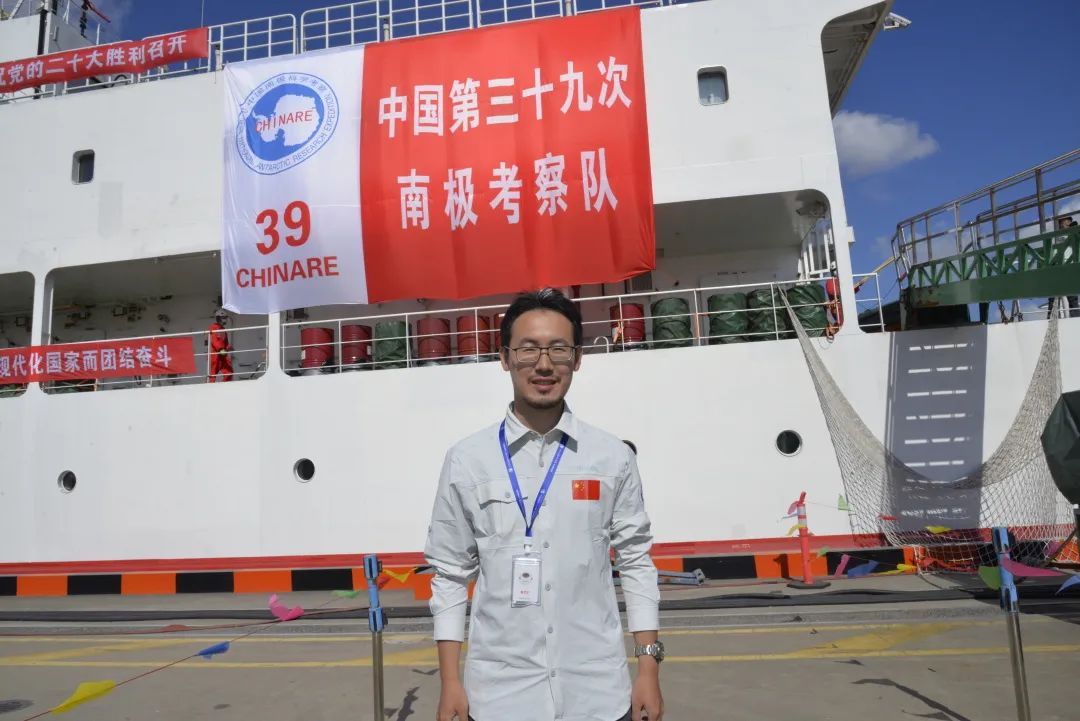 自然资源部北海局队员张海舟与“雪龙2”号合影