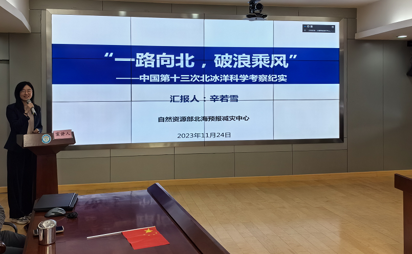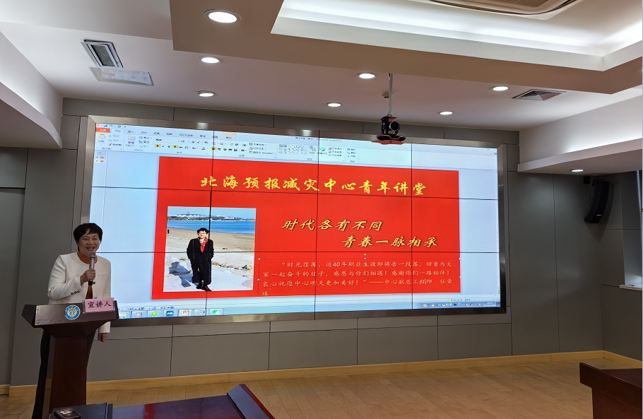 11月24日下午,北海预报减灾中心组织开展年度第三期“青年讲堂”。本期讲堂以“时代各有不同 青春一脉相承”为主题,中心副总工程师任荣珠和参加中国第13次北冰洋科学考察队员辛若雪担任宣讲嘉宾。中心领导班子及职工代表50余人参加活动。 辛若雪以“一路向北 破浪乘风”为题,讲述了参与中国第13次北冰洋科学考察,随船78天,航行1.5万余海里,完成49个站位并首次在我国北冰洋科学考察中成功冲击北极点的精彩故事,表达了新时代新青年不畏艰险、挺膺担当的壮志豪情。