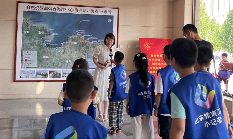 6月30日下午,山东教育卫视小记者团41名小记者走进烟台海洋中心采风,旨在通过亲身体验与实地采访,增强小记者们对海洋科学及海洋保护的认识。此次活动不仅让小记者们开阔了视野,提升了他们的新闻素养和社会责任感,也助于中小学生更好地了解海洋工作、海洋文化、海洋理念,活动将以山东教育卫视《校园新播报》为窗口展示。 启航梦想,触碰海洋之心 小记者团到达后,烟台海洋中心工作人员李娜为其介绍了中心历史、业务范围、海洋工作的内容与意义。小记者们认真听讲,并用文字记录真实感受。