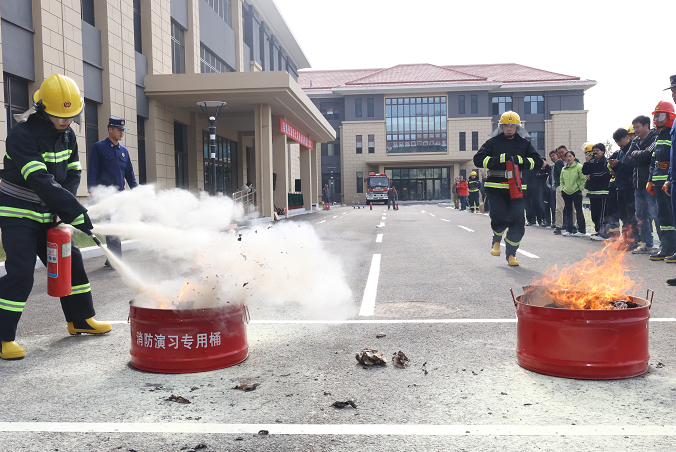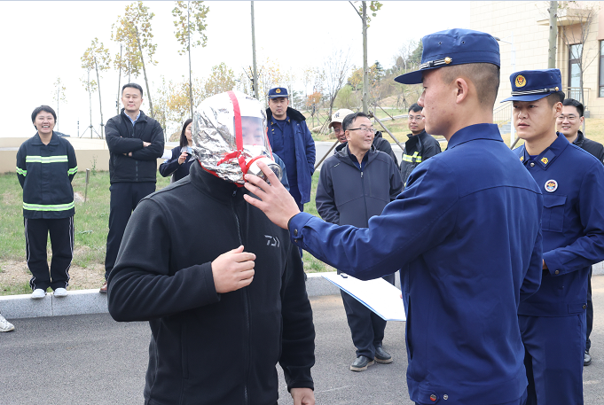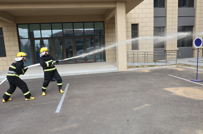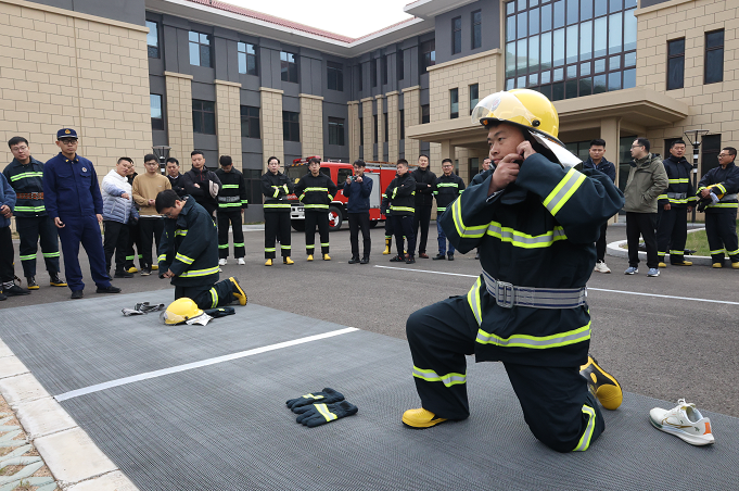 本次比武以实操竞技的形式进行,设置佩戴消防自救呼吸器、穿戴灭火战斗服、使用灭火器扑火3个个人项目以及室外消火栓射水打靶一个团体项目。
