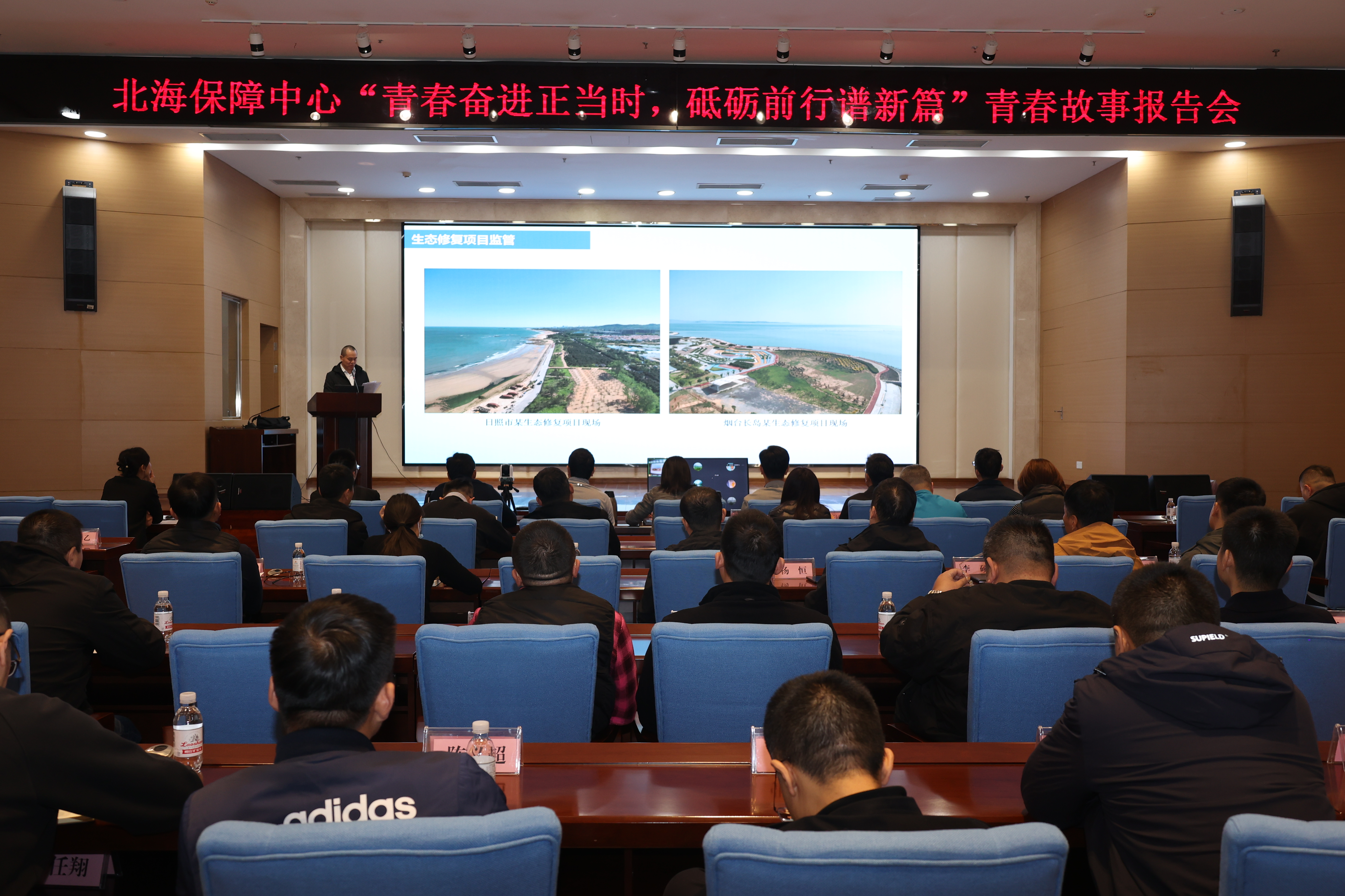 为不断推进青年工作高质量发展,加强对年轻干部职工的教育引领,11月26日,自然资源部北海局保障中心举办了“青春奋进正当时,砥砺前行谱新篇”青春故事报告会暨青年理论学习小组2024 年度第四次集体学习活动。本次活动聚焦激励广大青年干部职工立足岗位、勇担青春使命,推动中心青年理论学习走深走实。中心45岁以下青年同志60人现场参会、21人视频参会。