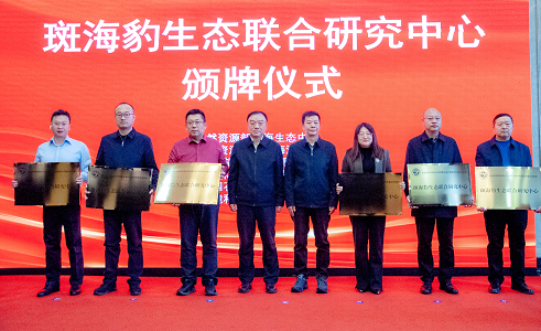 揭牌仪式 杨建强副局长在致辞中指出,斑海豹是国家一级保护动物,辽东湾是斑海豹在我国唯一的繁殖区,联合研究中心各共建单位在斑海豹保护与生态修复方面开展了大量工作,并取得显著成效。他希望联合研究中心充分发挥科技创新平台优势,加强科技合作、资源共享、人才培养、技术交流,紧密围绕生物多样性保护需求,助力地方的高水平保护和高质量发展。 徐同连副市长在致辞中对联合研究中心的成立表示热烈的祝贺,重申了盘锦在环渤海经济圈和东北亚经济圈中的重要性,肯定了盘锦市过去的海洋生态预警监测和保护修复工作,对联合研究中心未来发挥的作用充满期待,并表示希望借此契机深入挖掘蓝色经济潜力,推进盘锦市海洋经济高质量发展,为加快建设海洋强国贡献力量。