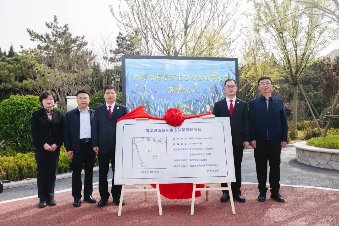4月18日,自然资源部北海预报减灾中心携手青岛市市南区人民检察院、青岛市市南区人民法院和青岛市海洋发展局,在青岛湾栈桥码头共同启动青岛湾海草床生态补偿修复项目,创新性推进生态保护修复多元化投入机制,为海洋生态保护修复注入法治与科技的双重力量。 本项目是青岛市首次将非法捕捞水产品公益诉讼案件的生态补偿资金用于海草床生态修复,开创了青岛市将公益诉讼生态赔偿资金定向用于海草床修复的先河。项目在青岛湾划定1750平方米修复区,计划移植鳗草种苗近35万株。通过海草床生态修复,不仅筑牢了海洋生物繁育的生态基底,更以“固碳增汇+栖息地重建”双核驱动,真正做到了将生态修复成果实实在在留在当地。