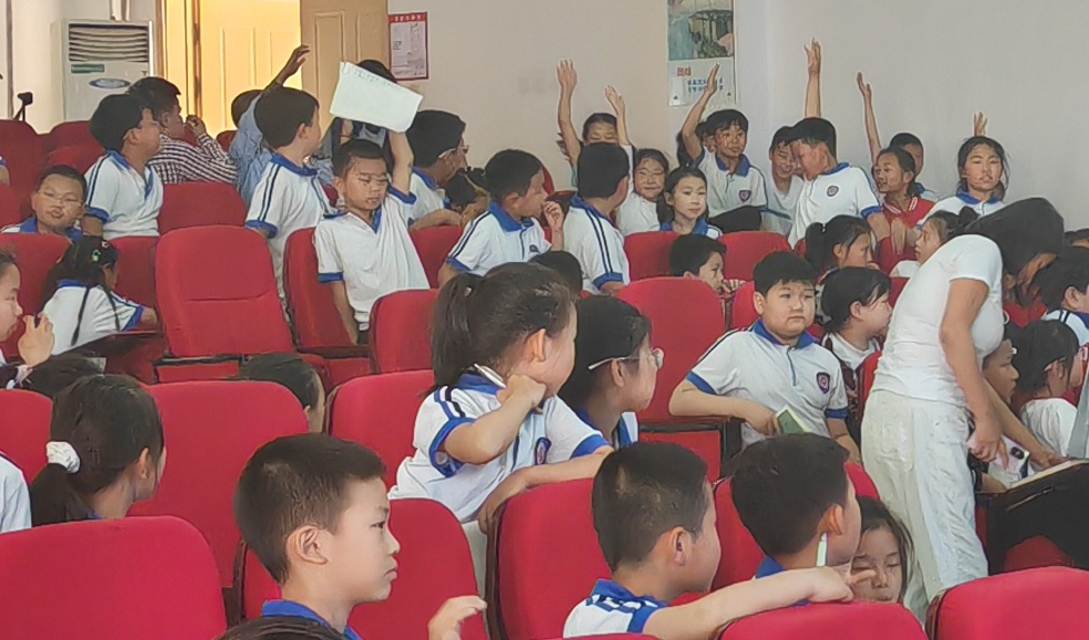 课上向孩子们讲解了海洋灾害的形成原理和应对方法,课堂互动环节气氛热烈,他们专注聆听讲解,积极举手发言,争先恐后地回答问题,这场活动不仅丰富了学生们的课外知识,也为他们种下了热爱海洋、保护海洋的种子。