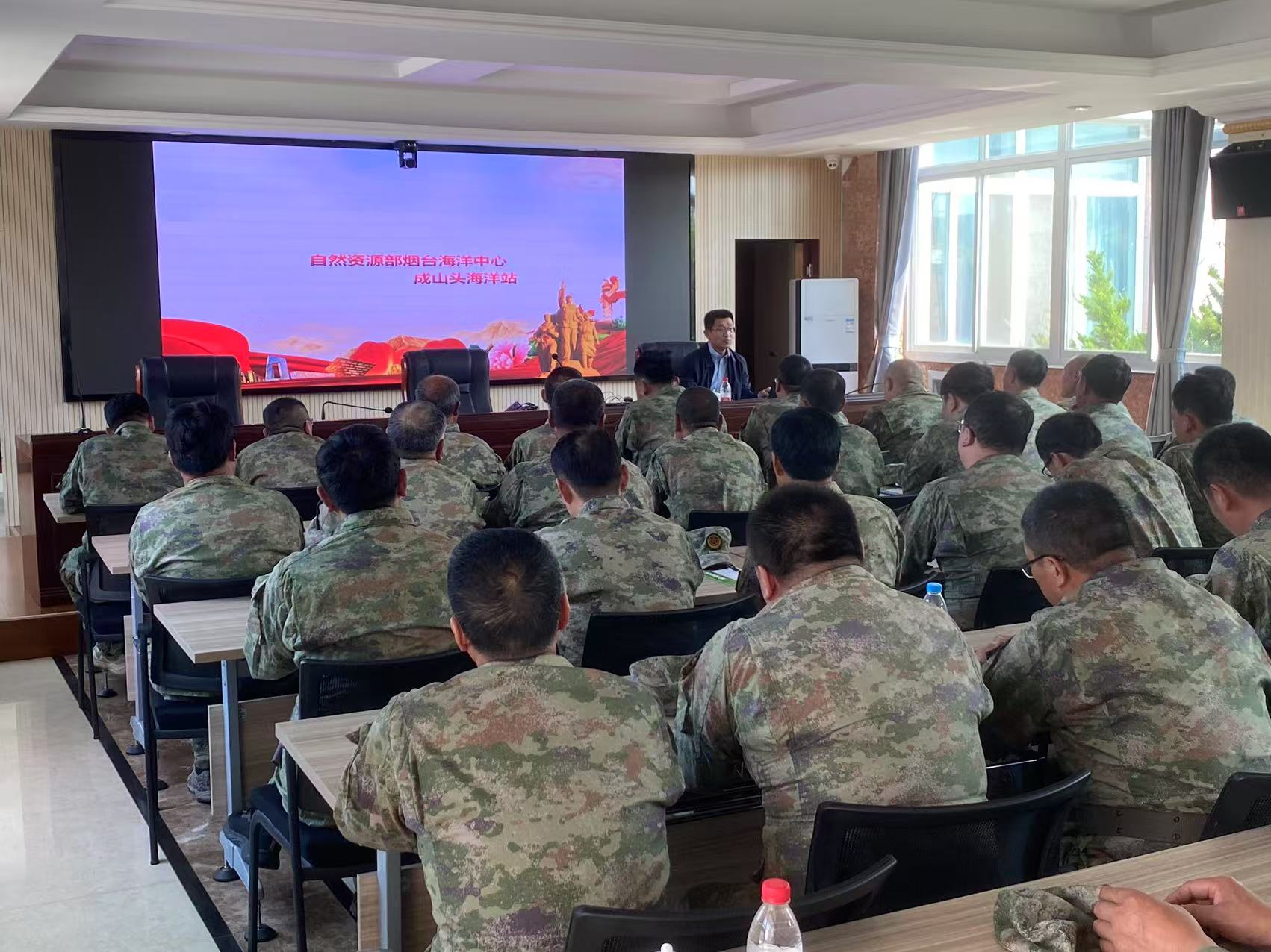 中心通过发放精心设计的科普手册、科普展板及开展专家讲解等形式,中心向市民群众普及海洋环境保护、海洋资源利用等知识。市民们纷纷表示通过这种面对面的科普方式,不仅增长了海洋知识,更增强了对海洋生态保护的意识。 迷彩防线——荣成民兵海洋特训 应荣成市人武部邀请,烟台海洋中心在荣成市国防教育中心对当地民兵进行热爱海洋,保护海洋,海洋防灾减灾知识宣传。