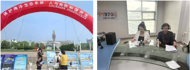6月8日,庄河海洋站联合市海洋发展局在五一广场通过展板讲解、资料发放普及海洋保护与防灾知识。庄河海洋站站长走进电台直播间,介绍中心职能及庄河海洋保护工作,拓宽宣传覆盖面。