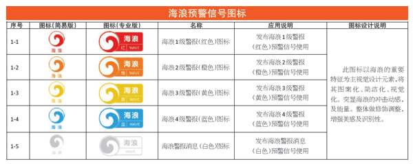 日前,国家海洋局预报减灾司印发《海洋灾害预警报标示符》技术文件,规定了红、橙、黄、蓝、白5级,海浪、海啸、风暴潮、海冰、赤潮、海雾、海水低温、咸潮8类海洋灾害预警信号图标。该标识符以海洋灾害的特征为主视觉设计元素,统一规范的海洋灾害预警报标符,对海洋灾害预警报的发布具有重要意义。从本期开始,本栏目将陆续对其进行介绍,这一期先介绍海浪预警信号图标。