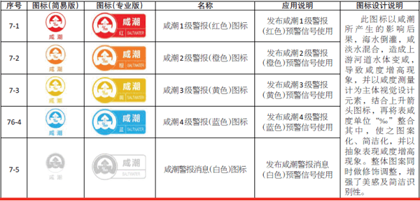 咸潮,又称咸潮上溯、盐水入侵,是一种天然水文现象。当淡水河流量不足,令海水倒灌,咸淡水混合造成上游河道水体变咸,形成咸潮。咸潮一般发生于冬季或干旱的季节,即每年10月至翌年3月之间出现在河海交汇处,例如长三角、珠三角周边地区。影响咸潮的主要因素有天气变化及潮汐涨退。尤其在天文大潮时,咸潮上溯的情况更为严重。咸潮往往给沿海地区居民生活用水、工业生产以至农业灌溉造成不良影响。近日,国家海洋局预报减灾司印发的《海洋灾害预警报标示符》技术文件,规定了红、橙、黄、蓝、白5级,海浪、海啸、风暴潮、海冰、赤潮、海雾、海水低温、咸潮8类海洋灾害预警信号图标。本期继续为读者介绍咸潮预警信号图标。 |