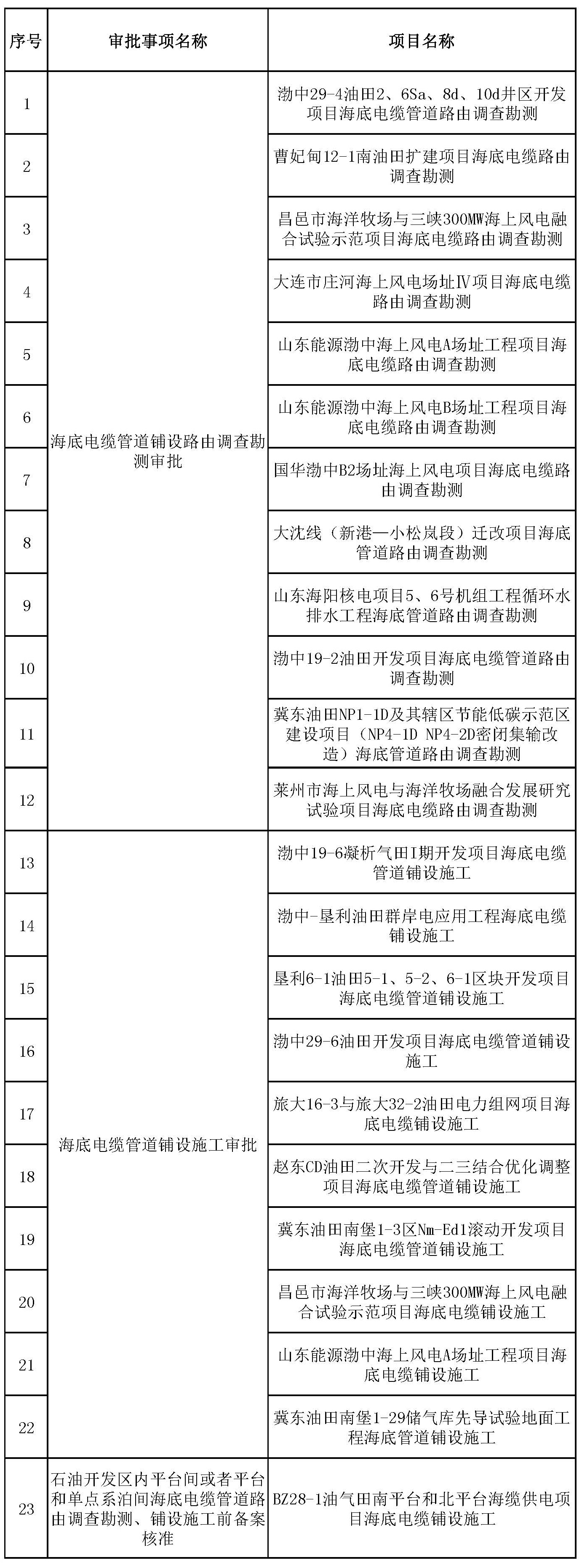 2022年7月至11月自然资源部北海局铺设海底电缆管道行政许可办理统计
