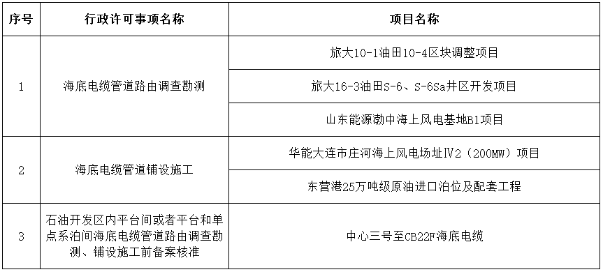 2024年5月自然资源部北海局铺设海底电缆管道行政许可办理统计