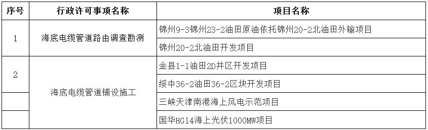 2024年7月自然资源部北海局铺设海底电缆管道行政许可办理统计