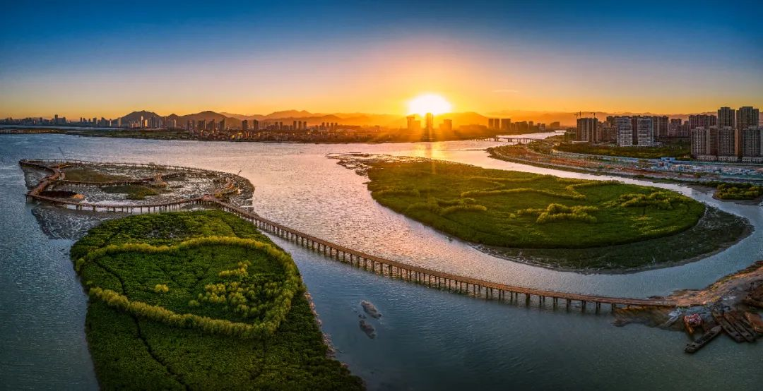 厦门市海洋与渔业研究所资源养护室主任郭秋灯告诉记者,通过红树林生态修复,目前公园海洋生物多样性大幅提升,鱼类、贝类和虾蟹类物种数和生物量增加,其中物种总数增加2.4倍,生物量分别提高2.99倍、4.76倍和1.19倍。现在,公园已成为抵御台风、风暴潮等海洋灾害的绿色缓冲带,净化了水质,保障着沿海人民的生命财产安全。 “通过构筑亲水空间体系,下潭尾红树林公园变成了市民休闲娱乐的‘网红公园’。”郭秋灯表示,公园目前建成码头5座、景观栈道长度约为4.2公里、上岛栈道1.1公里,游客最多时可达 4.6万人次/天。 如今,林鹏院士的弟子、厦门大学环境科学与工程学院院长卢昌义接过了他的衣钵,继续守护这片红树林。从无人机传回的图片中,可以看到壮阔而浪漫的一幕:几个形状各异的小岛上,分布着由不同树种绘成的“I”、“爱心”和“五星”图案,连在一起就是“我爱中国”,这是卢昌义和团队为公园精心设计的地标,犹如一封大自然写给人类的情书屹立在海面上。 “除了种植本地品种外,我们还引进了优良的外国树种,利用树种之间生长速度和外形颜色的差异,打造出错落有致的水上景观。”卢昌义解释说。 一任接着一任干,一棒接着一棒跑,“海上森林”终将郁郁葱葱、连绵不绝。
