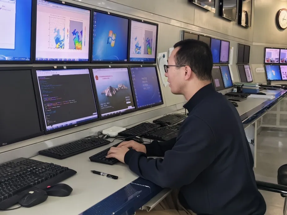 李锐在进行海浪数值模型代码调试 勇挑重担 创新灾害预报和评估技术 助力海洋防灾减灾业务发展 海洋防灾减灾是中心的核心业务工作,时刻关系到人民群众的生命财产安全。李锐坚持“人民至上,生命至上”的理念,在日常预报工作中,为了确保预报与实况吻合,李锐经常通过中心观测系统查看近岸摄像头传回来的实时海况。他发现在风暴潮过程中,青岛市澳门路近岸经常出现海浪翻过海堤、拍向陆地的漫堤现象,对附近的游客安全造成很大影响。但如果只看潮位预报结果,水位并没有达到摄像头中显示的高度。由于李锐的博士论文研究的是海浪和海流相互作用,他受此启发,想到这种漫堤现象可能是近岸浪和风暴潮叠加导致的结果。于是李锐通过查阅大量的文献,了解到一种新的耦合模型可以模拟这种现象,他用仅有的一个测试个例为基础不停地测试耦合模型,在解决了模型编译中遇到的一个又一个的问题后,终于得到了和模型开发团队一样的模拟结果。以这个耦合模型为基础,李锐开发出了北海区浪-潮-流耦合数值预报模式和青岛澳门路漫堤预警系统,实现了对海浪和风暴潮耦合过程的预报,并在“利奇马”等历次风暴潮过程中准确预报了澳门路漫堤过程,为青岛市滨海安全提供精准预报支撑。