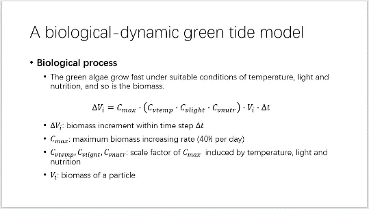 李锐构建的浒苔绿潮生态动力学模型控制方程 多年来,李锐以其卓越的专业技能和不懈的创新精神,在海洋预报和防灾减灾领域取得了显著成绩,其工作成果不仅体现了个人奋斗的价值,更彰显了新时代青年的担当与使命。他用实际行动诠释了“青年突击标兵”的内涵,展现了新时代北海区青年科技工作者在海洋事业中的责任担当与奋斗精神。展望未来,李锐将继续不忘初心、牢记使命,不断探索海洋预报的新领域、新技术,以更加饱满的热情和更加坚定的信念,投身到海洋预报减灾事业中,为保障海洋环境安全、支撑海洋经济发展作出新的更大贡献。 (策划:乔彬 陈艳丽;文图:北海预报减灾中心) |