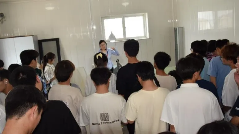 向高校学生介绍海洋站 在国家海洋环境预报中心举办的海洋防灾减灾科普直播中,王梅菊不仅介绍了海洋防灾减灾的技术手段,还带领观众参观了北隍城站,深入讲解了水文气象数据的采集方法和各类海洋观测仪器的工作原理。她希望通过这些生动的案例和现场讲解,帮助社会公众建立起对海洋环境的深刻认知,更直观地了解我国在海洋防灾减灾方面的科研成果及其在全球海洋治理中的重要作用。