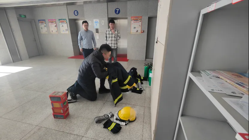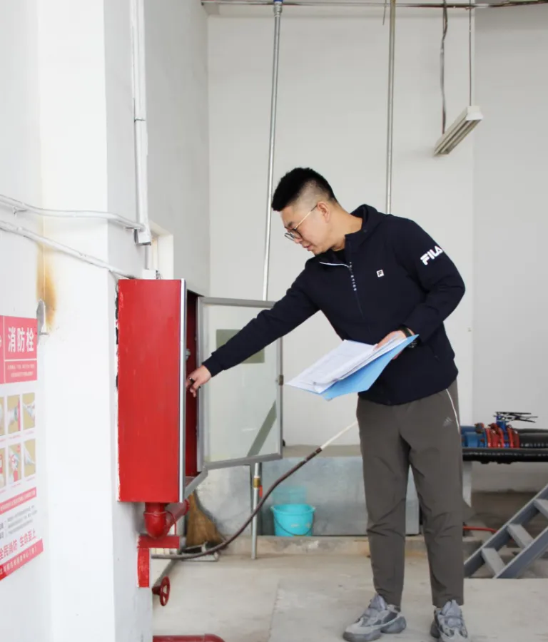 检查设备间消防设施 对于消防安全工作,韩亮能够熟练掌握院区内消防基础设备设施的型号、数量、布设位置等信息,讲起来如数家珍。每个月,他都会联合综合楼消防维保单位一起对综合楼消防设备设施进行检查,每年9月对局机关和中心即将到期的灭火器集中送检充填,确保综合楼内消防设备设施时时处于正常的工作状态。他积极组织北海机关事务中心相关人员参加消防设施操作员考试,主动牵头准备学习资料、联系培训机构、组织线上报名,并带队赴济南参加考试。最终中心4名职工通过考试,消防安全队伍专业技能水平得到了进一步提升。