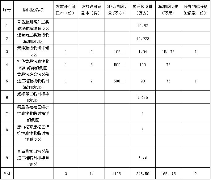 2013年8月份北海分局海洋工程(油气开发)和海洋倾废环境保护管理情况