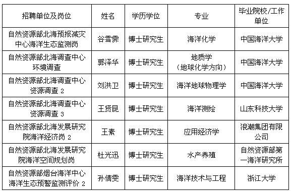 自然资源部北海局所属事业单位2023年公开招聘博士研究生岗位拟聘人员公示