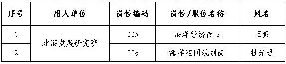 自然资源部北海发展研究院2023年公开招聘博士研究生岗位面试工作已结束,现将有关事项公告如下: 一、进入考察、体检人员名单(按岗位排序)