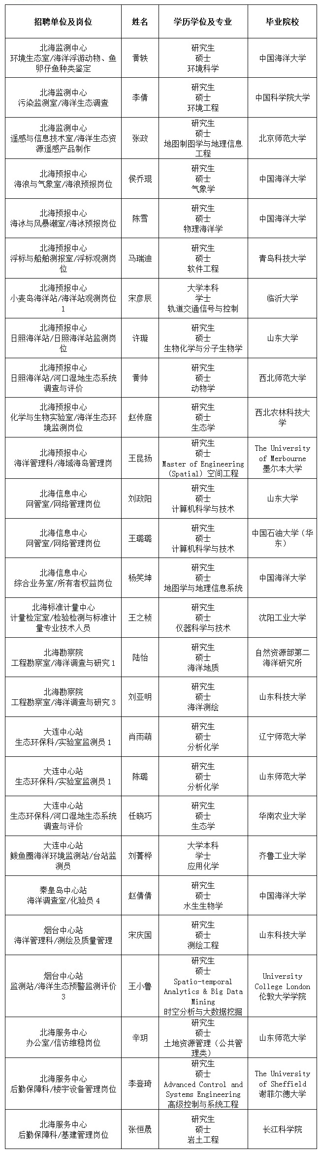 自然资源部北海局所属事业单位2021年公开招聘高校毕业生拟聘人员公示