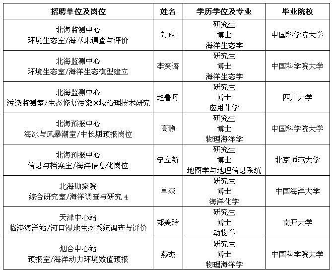 自然资源部北海局所属事业单位2021年公开招聘高校毕业生博士岗位拟聘人员公示