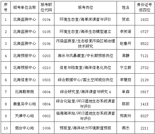 自然资源部北海局所属事业单位2021年公开招聘高校毕业生博士岗位面试工作已结束,现将有关事项公告如下: