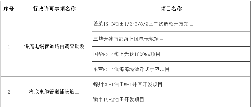 2024年6月自然资源部北海局铺设海底电缆管道行政许可办理统计