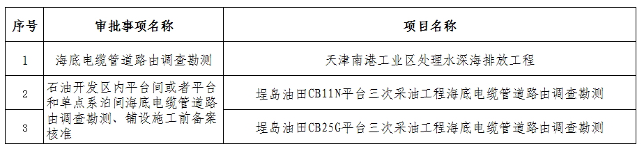 2023年6月自然资源部北海局铺设海底电缆管道行政许可办理统计